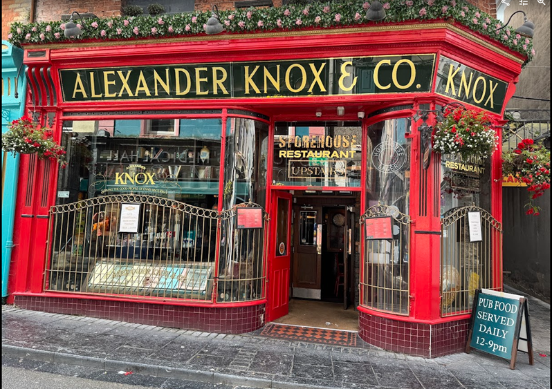 After arriving at the Old Ground Hotel in Ennis, we treated ourselves to tea and scones. The receptionist was very helpful, providing us with two maps and recommendations for where to go for dinner. She suggested Alexander Knox. We also have the option of meals in the hotel.