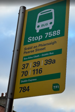 In the late afternoon, we took another stroll in this neighborhood, selecting a route that we had not tried before, so we could experience different sights to enjoy. We saw a sign on a building in English and Irish. We got one surprise today. A charging station for electric vehicles alongside the sidewalk, with two electric vehicles getting a charge. I have seen very few Teslas, and I am disappointed not to see any Subarus that are obviously not sold in Ireland. We are driving our third Subaru back home.