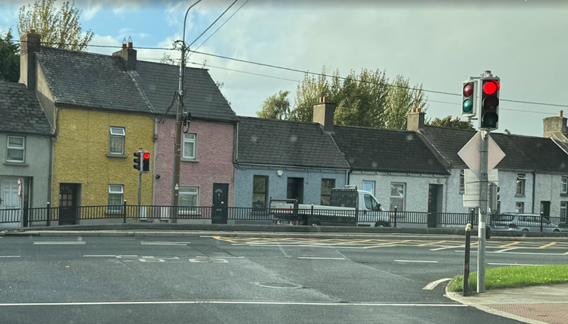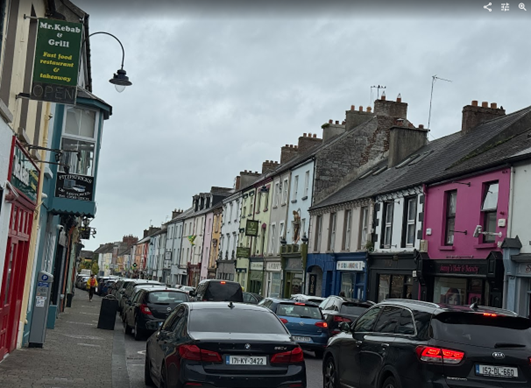 In Ireland, they drive on the left-hand side of the road, with the steering wheel on the right, and go around road traffic circles from the left, rotating clockwise or right. Driving through towns, I get the impression that homes are much smaller, some to the point of being tiny. They have a significant number of traffic lights. We drove through Limerick. As we saw in Eastern Europe, after the red traffic light, it flashes yellow before getting the green light. The yellow comes before the red as well. I did see Teslas on our drive. We made two stops in Limerick for passengers to get on and off. I get the impression that traffic circles are very popular in town. We saw larger homes in the outlying areas.