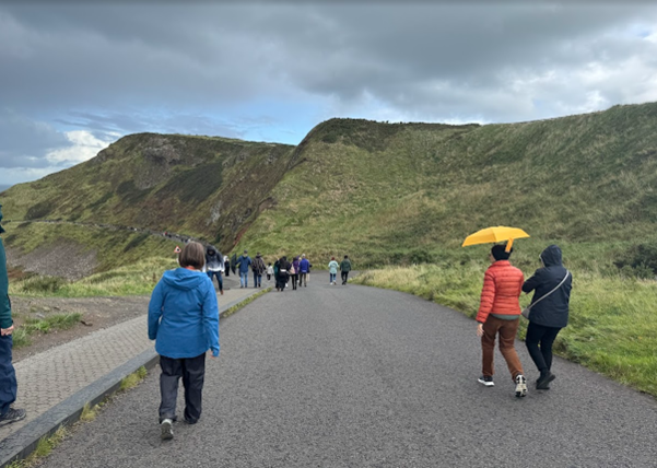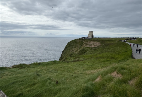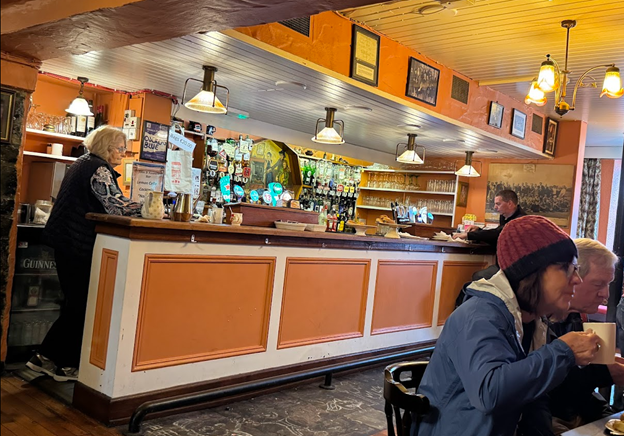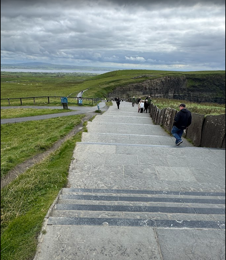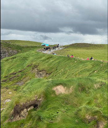 Most motorists drive vehicles that are smaller than those we are accustomed to in America. We saw an Amazon distribution center. To get an idea of how small Ireland is, the bus journey took three and a half hours from east to west, including two stops to drop off passengers. The nearer we got to Ennis, the sun made an appearance. I was delighted to see wind turbine farms. The roads we travelled on were in much better condition compared to some of our roads in Wisconsin. Naturally, I assume that they do not have the extreme weather that we have back home, with heat, snow, and ice helping to damage our roads.