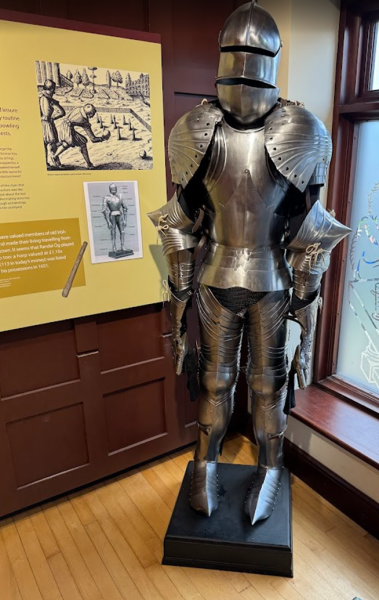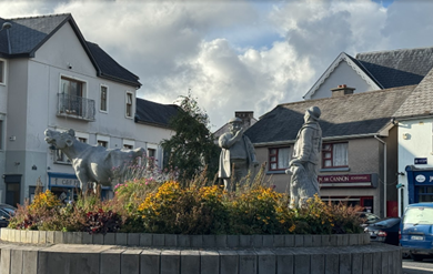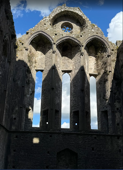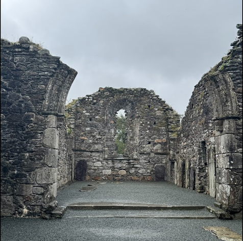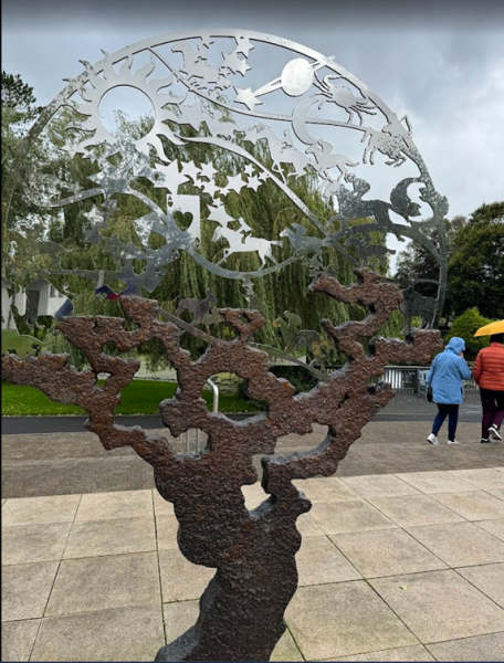 We followed the path of the Historical Train, interspersed with the Ennis Sculpture Trail. Our first stop was the Ennis Friary, one of Ireland’s oldest Franciscan friaries, and the burial place of the ancient Kings of Clare. It was founded in the 13th century by the royal O’Brien’s. The impressive building had many uses, including a courthouse, a jail, and an administrative center, with different occupiers throughout the centuries. Founded in 1240, and in use until 1871, initially a friary, a courthouse, and lastly a Church of Ireland parish church. Today, it is a heritage site.