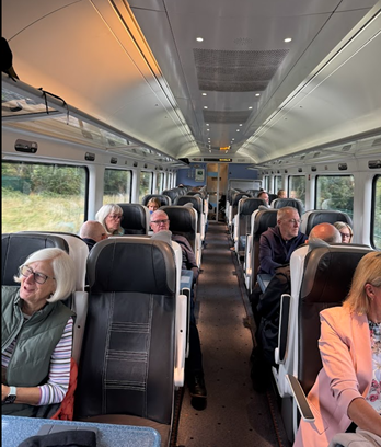 Our tour bus is a very comfortable Mercedes that seats about 50 people.