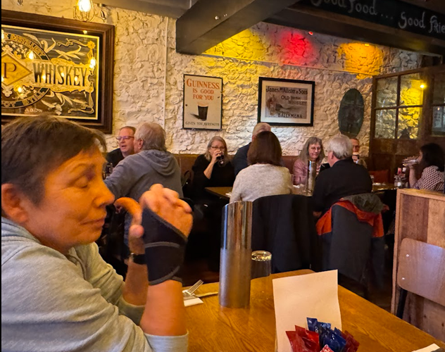 We had a delightful evening. Our goal was to go to the hotel pub and listen to music. We arrived early to get a table for two, ordered two Guinness and later an Irish coffee, and enjoyed the music. With us meeting members of the Rick Steves tour tomorrow, we elected to have an early night and made our way to our room at 9:00 pm. We tried watching TV, but could find nothing but soap operas, and gave up on that mission.
