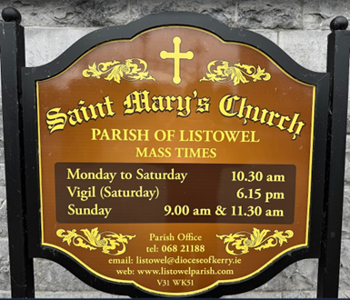We stopped and admired the Ennis Cathedral of Saints Peter and Paul, built in 1843. In 1874, the tower and spire were completed, and in 1890, Dr Thomas McRedmond was consecrated as the Bishop of Killaloe. The parish church of SS Peter & Paul was designated as the pro-cathedral of the diocese when the new Bishop decided to make Ennis his home. Major renovations were carried out in 1894 – the construction of the present main entrance and the redecoration of the building.
