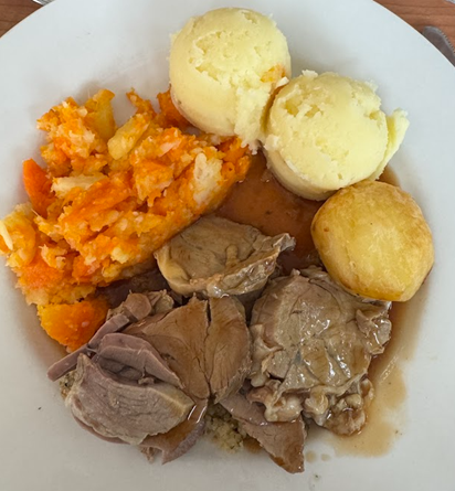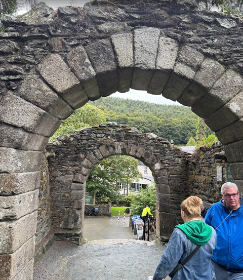 We woke at the Old Ground Hotel this morning after sleeping for 11 hours. If that does not tell you how tired we were, nothing will. Breakfast is included in the room rate, and that too was a treat. We had oatmeal, honey and cream, coffee, toast and jam, with fresh fruit, plus a buffet selection fit for a king. Naturally, we did not gorge ourselves, but we look forward to what we might have for the next two mornings. I had a banana and took an apple for my lunch, while Linda selected yogurt for hers.
